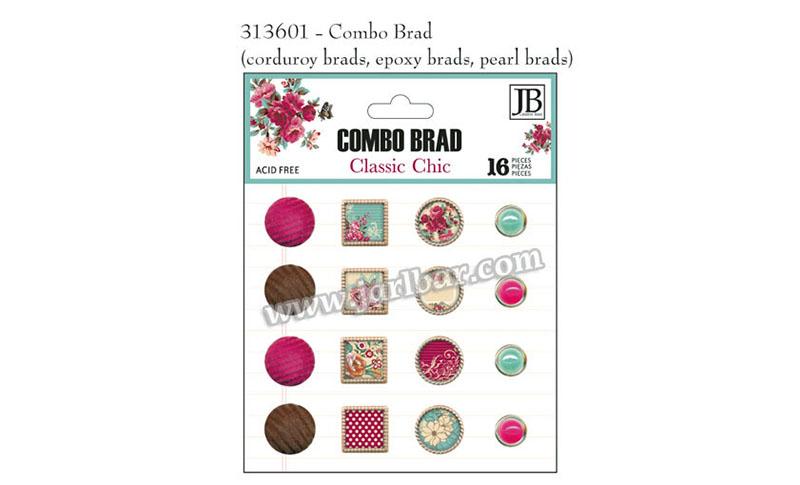 JB's Combo Brads are versatile by adopting different material,epoxy brads,corduroy brads,pearl brads,just use this fabulous new mixture of brads to glam up your next paper project.